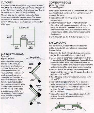 The following are measuring suggestions for inside and outside mounting as you may ultimately measure for installation as you deem appropriate.