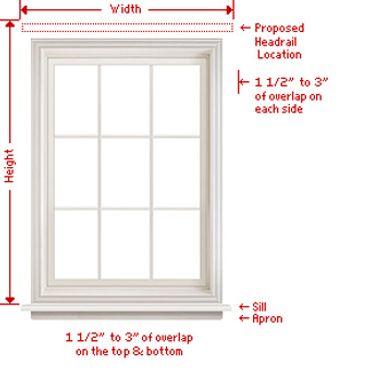 The goal in measuring a window for a window treatment is to obtain the correct window measurement. When ordering window treatments there are a few guidelines to keep in mind. (Also, please see the diagrams below.) You can use these guidelines if you choose to buy the products and install them yourself. But, please rest assured that we can also measure during our free estimate we provide to you!